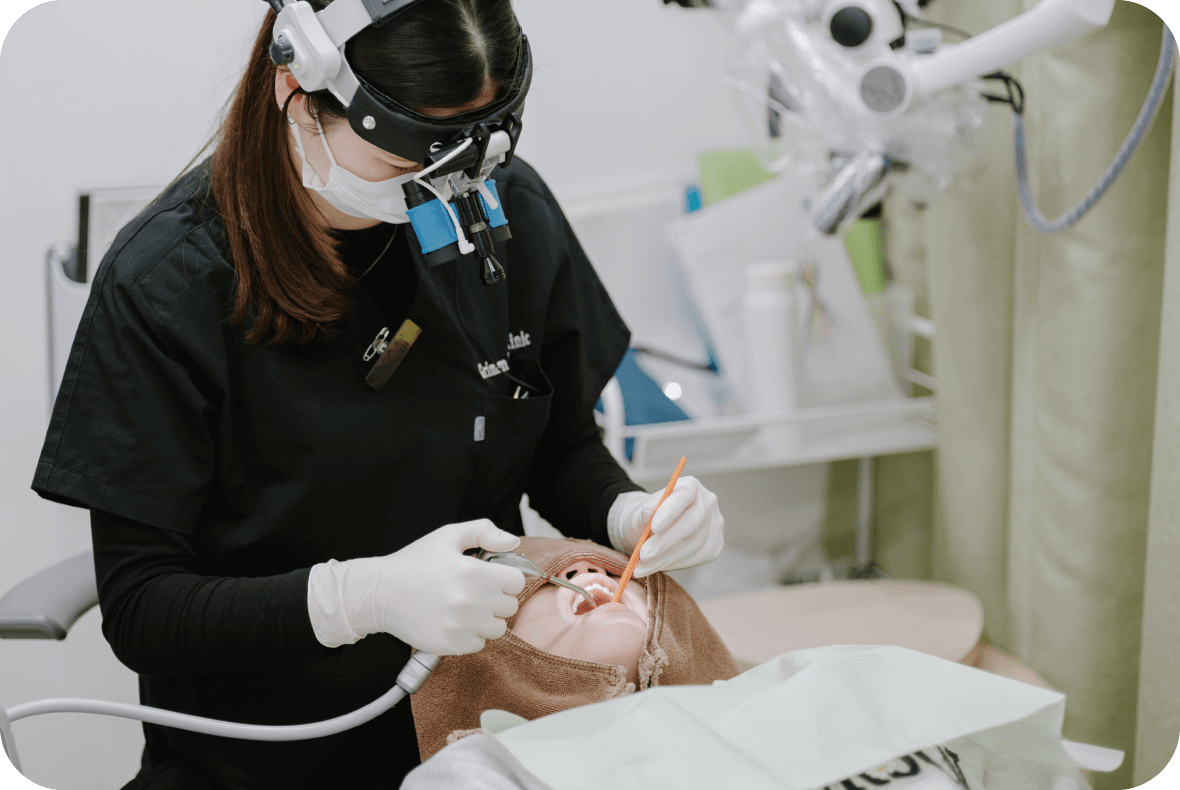 精密根管治療では抜歯を避け、多くの歯を保存する可能性を高められますが、すべてのケースで理想通りの結果が得られるわけではありません。当院では、難治性の症例にも対応できるよう、さまざまな治療法を取り入れています。もし根管治療が効果を示さなかった場合や再発した場合、歯根端切除術という治療法を選択することがあります。歯根端切除術は、根管治療で十分な効果が得られなかった場合に、歯根の先端を切除して感染源を取り除き、再発を防ぐ処置です。当院では、患者様一人ひとりの症例に合わせて最適な治療方法を提案し、精密根管治療をはじめ、できる限り天然歯を保存するために長期的な歯の健康をサポートする治療を提供しています。
